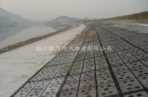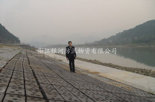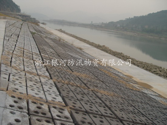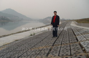 刚建成的生态护坡板现场,不但效果美观,而且有效阻挡了洪水的冲刷,从而保护了堤塘。 |